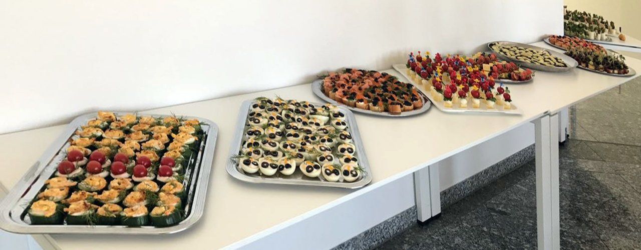 - As a rule, we supply proven finger food buffets, festively decorated on larger plates. This is visually appealing and simplifies handling. You just need to put away empty plates.