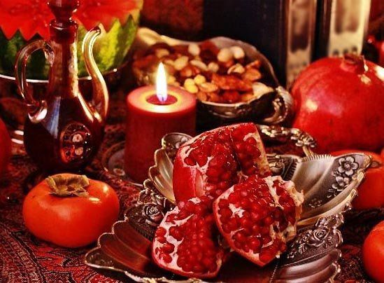 Mit Freunden und Verwandten sitzt man auch oft um ein Feuer, das dabei für Licht und Hoffnung steht, und feiert durch die Nacht, es wird dabei oft aus den Gedichten des persischen Dichters Hafez vorgelesen.